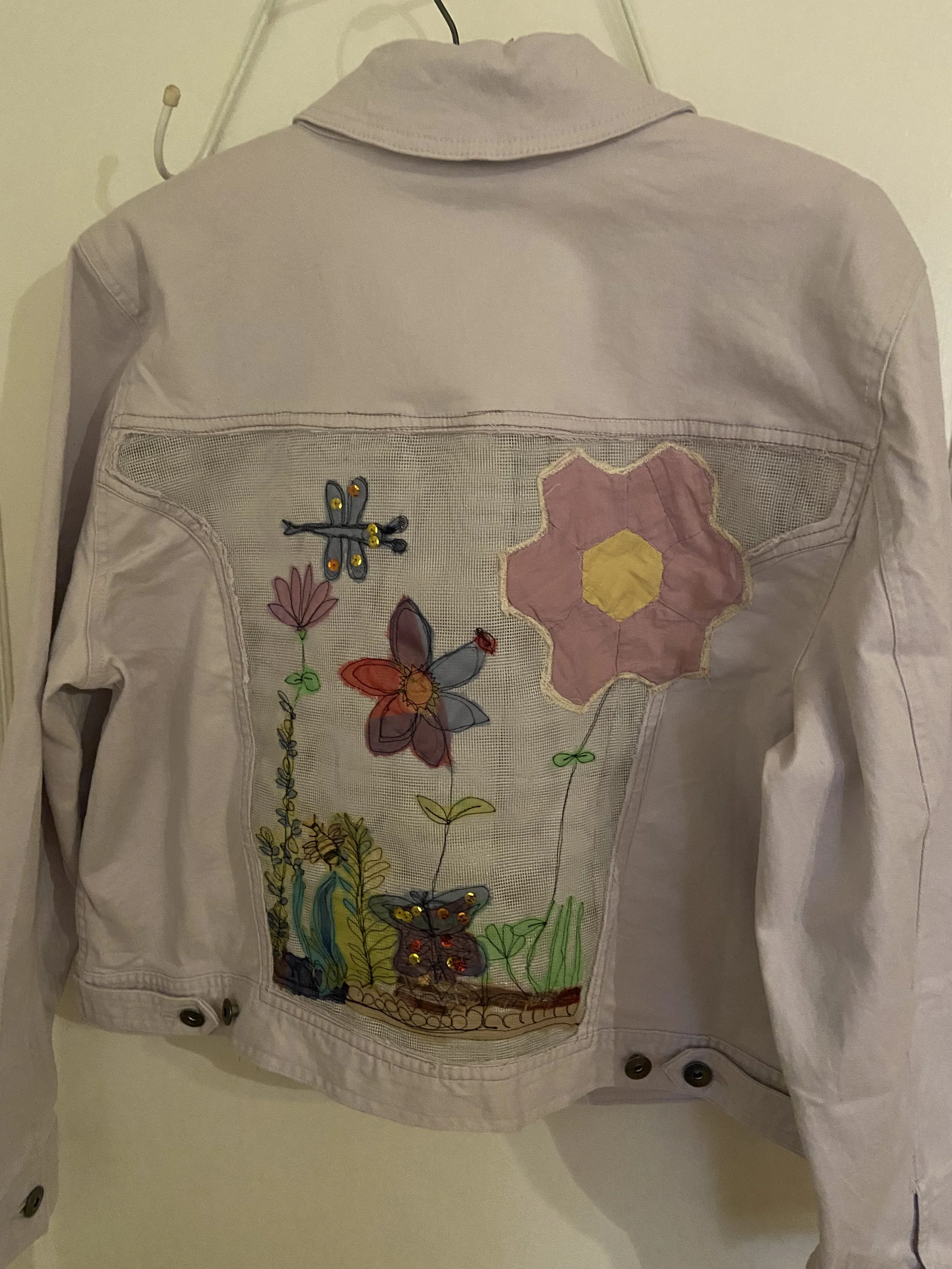 Please look at my samples and see what you like. Butterflies? No bugs? Flowers only? I have a limited supply of vintage quilted flowers to put on your personal jacket too.